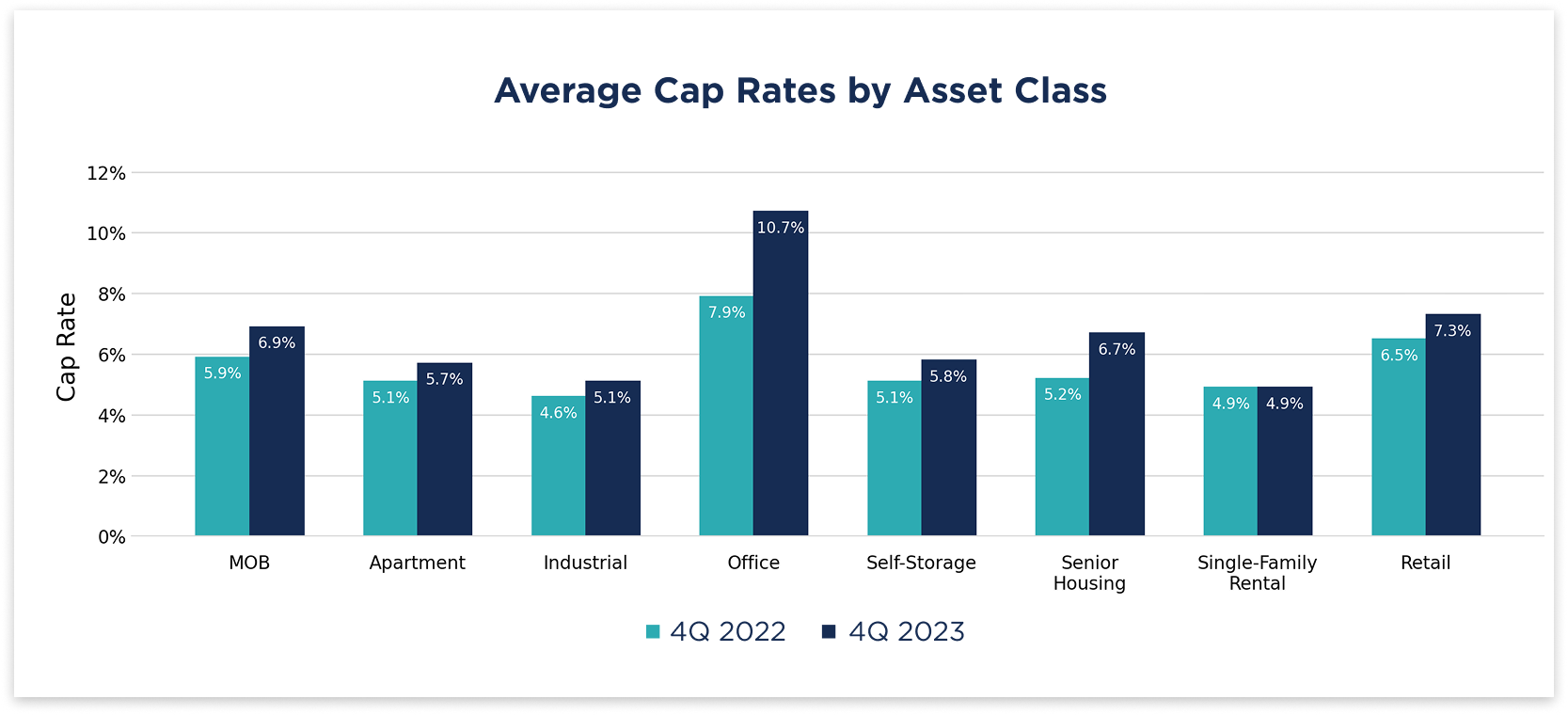 Globe Street. Berger, Richard. MOB Cap Rates Rise for Fifth Consecutive Quarter. (March 12, 2024)