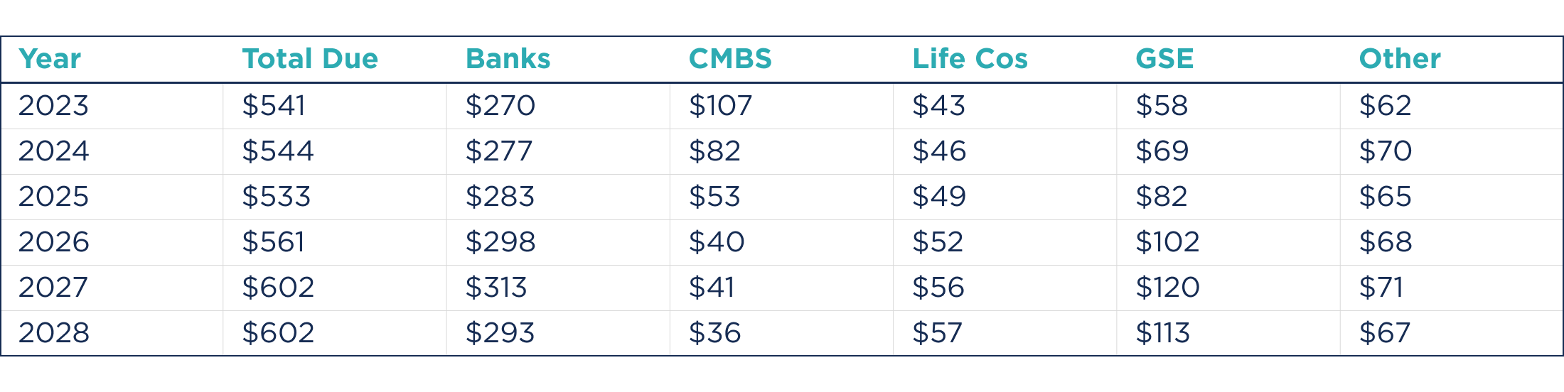Commercial Mortgage Maturities by Lender Type ($ Billion)